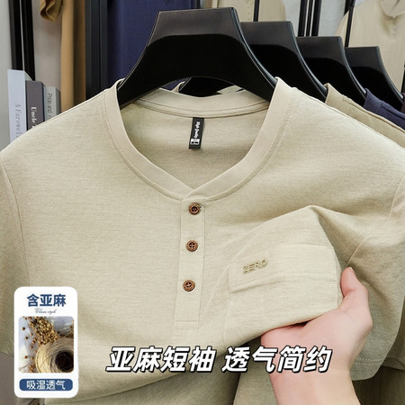 【2026新款短袖】t恤男夏季圆领打底衫半高领丝光棉半袖桑蚕丝V领纯棉翻领冰丝短袖纯色中年立领体恤